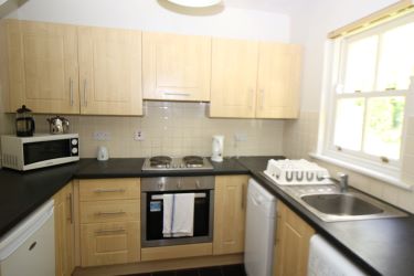 Kitchen area with tiled floor, fitted units and counter top 3.70 m x 2.70 m